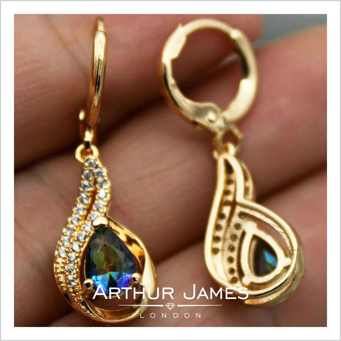 Clarity: VVS1 • Main stone shape : Pear • Plating : Yellow Gold  •  Closure : Clip-On