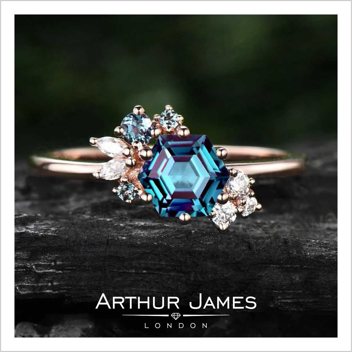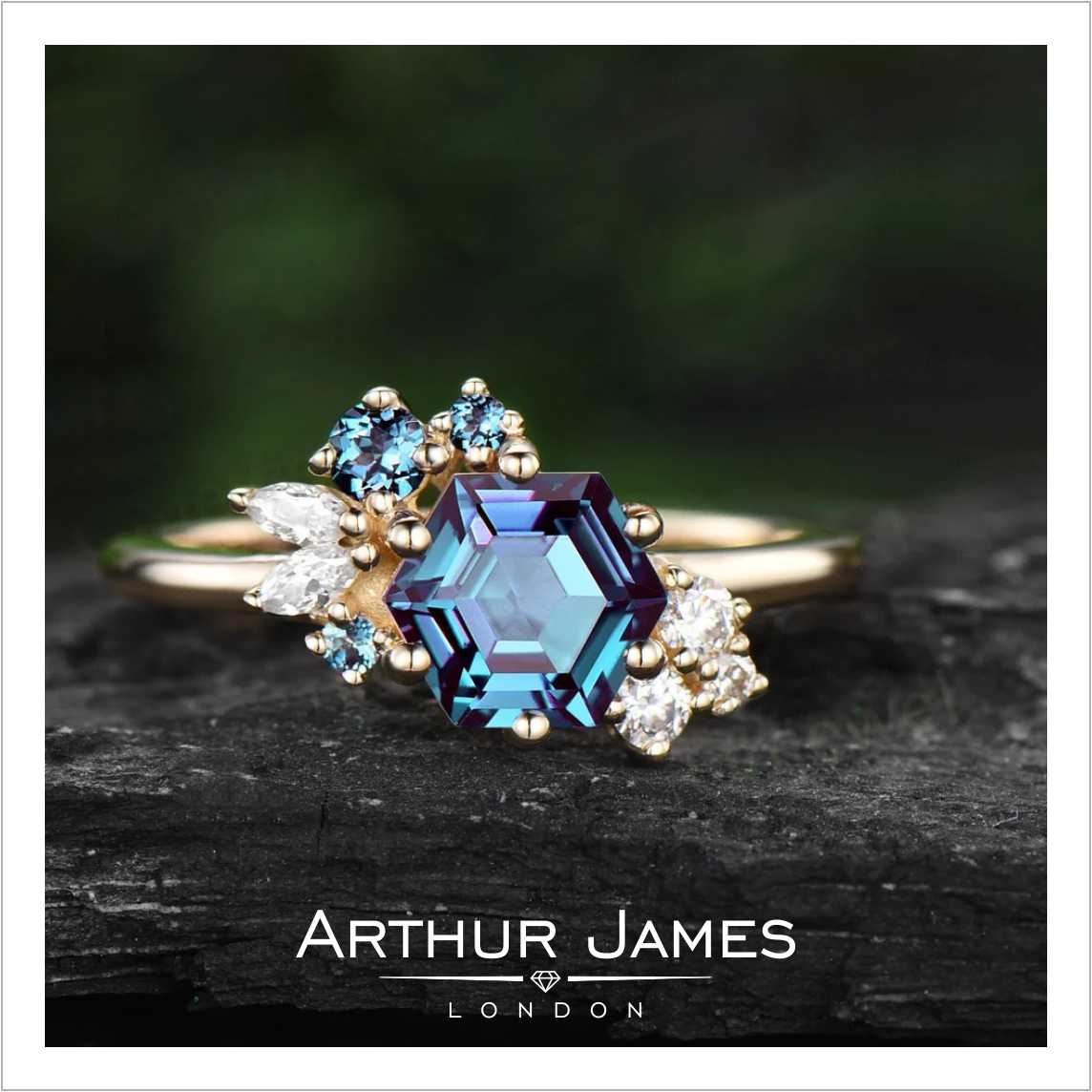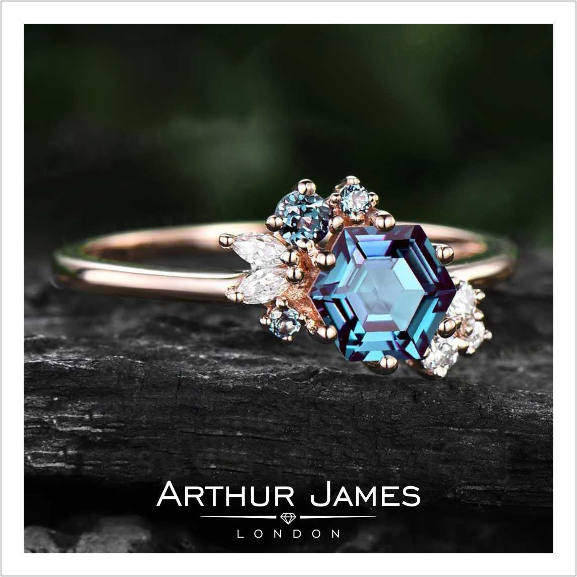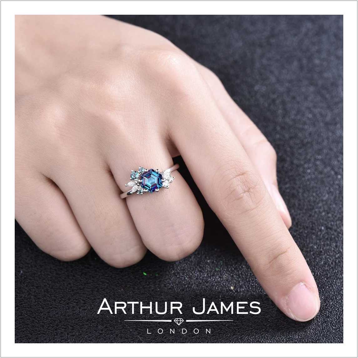 • Hexagon cut blue diamond women’s ring