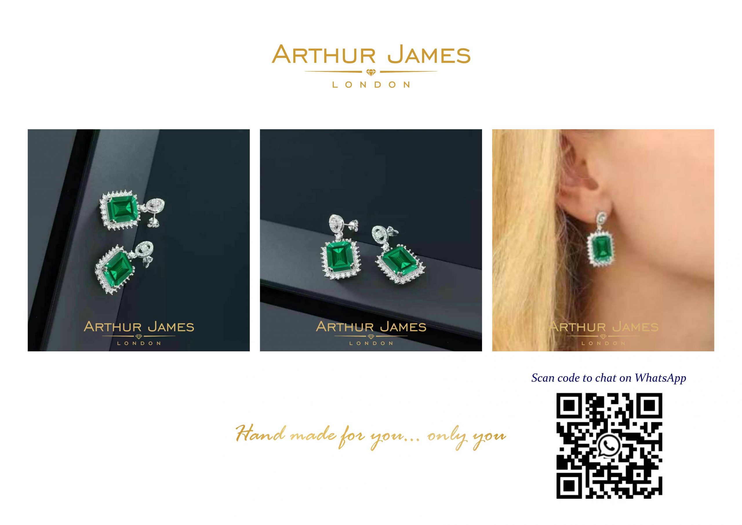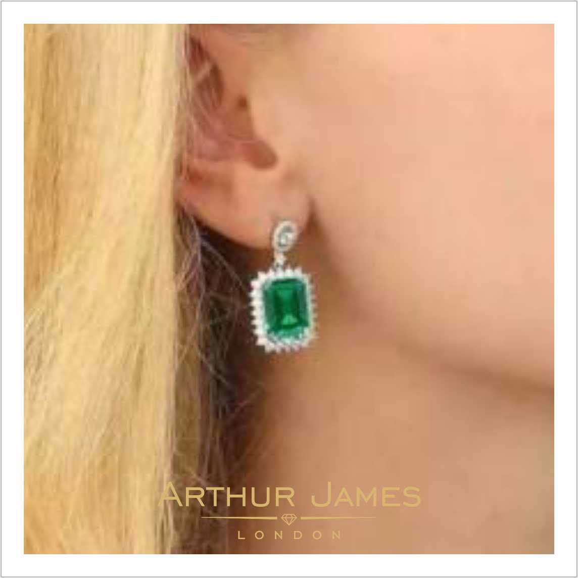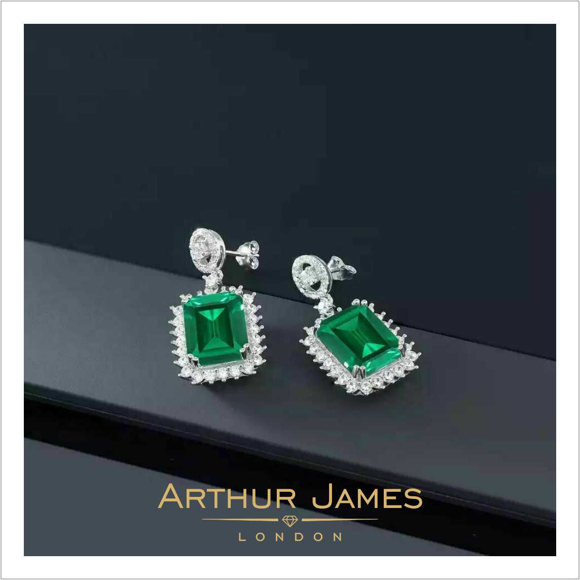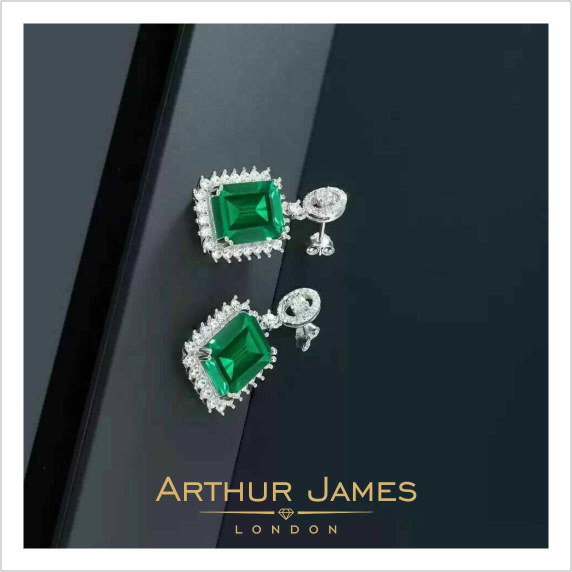 Clarity : VVS1  •  Main stone shape : Emerald  •  Plating : White Gold  •  Closure : Push back