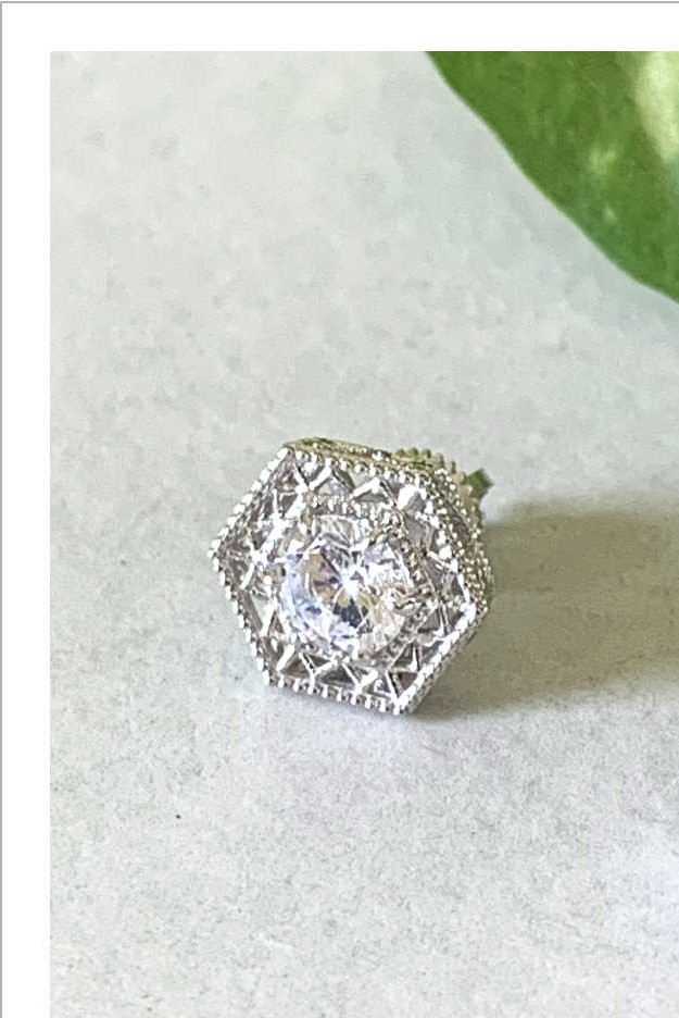 • Milgrain hexagon single diamond vintage stud earring for women / men