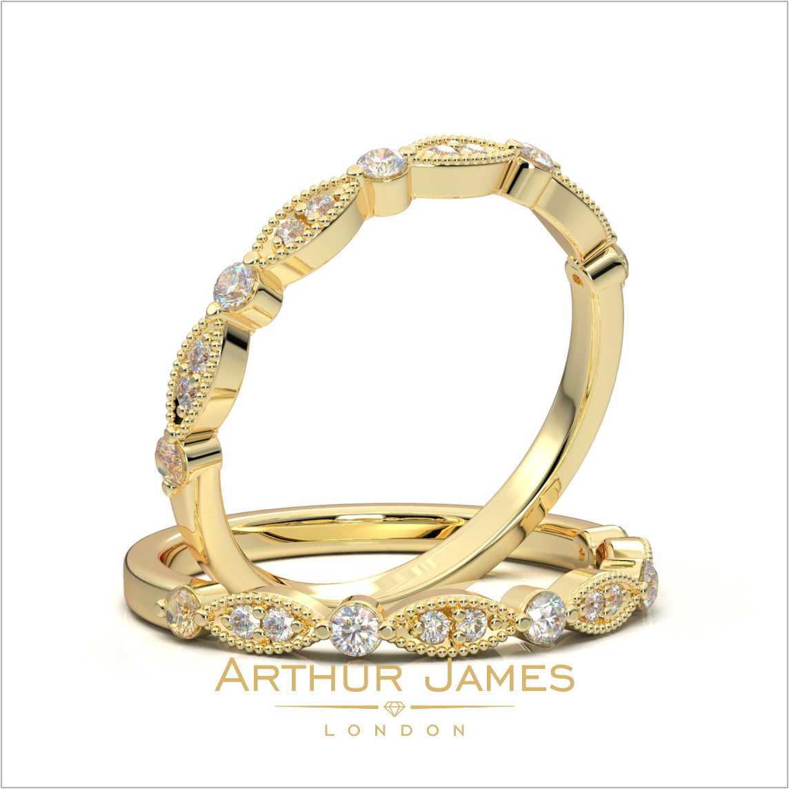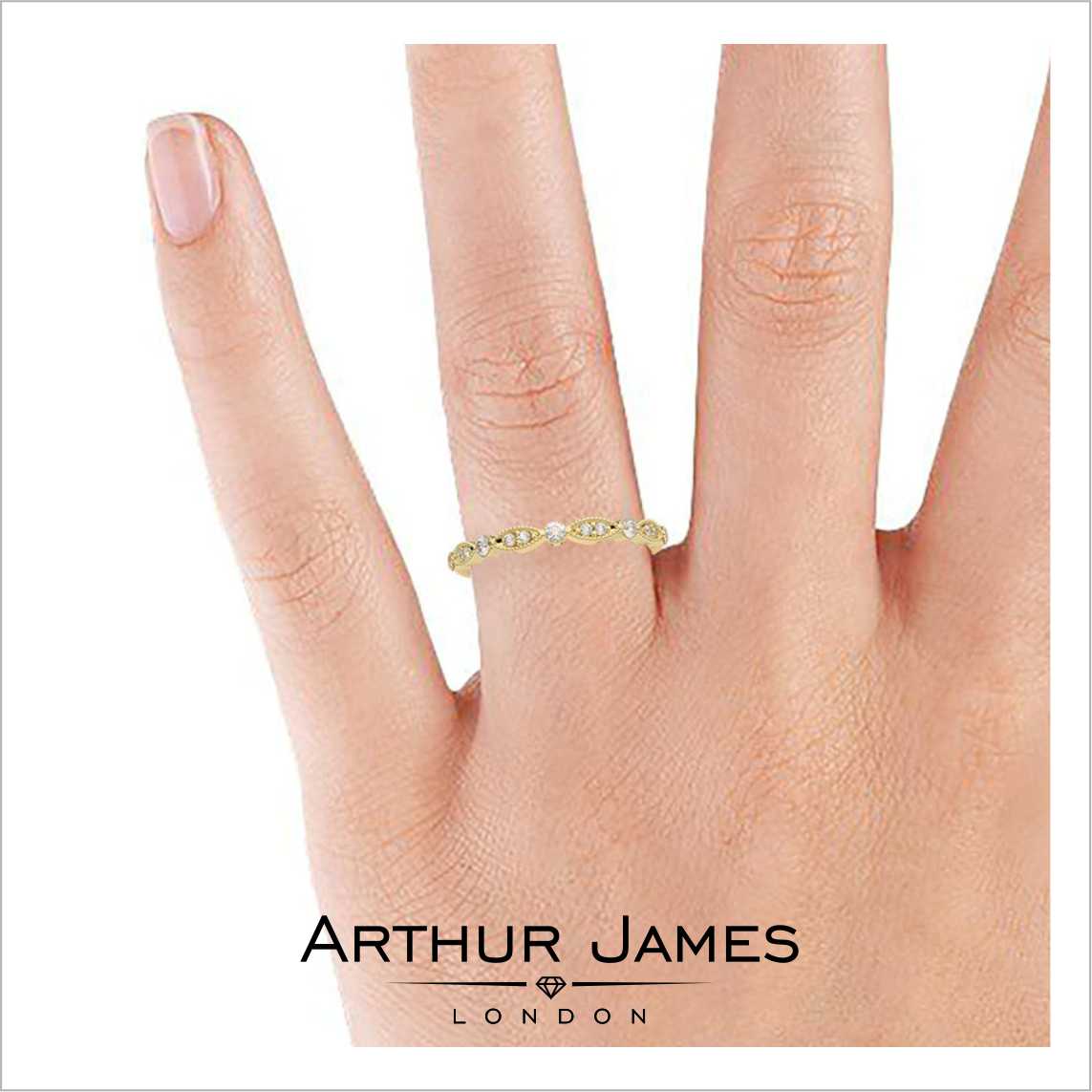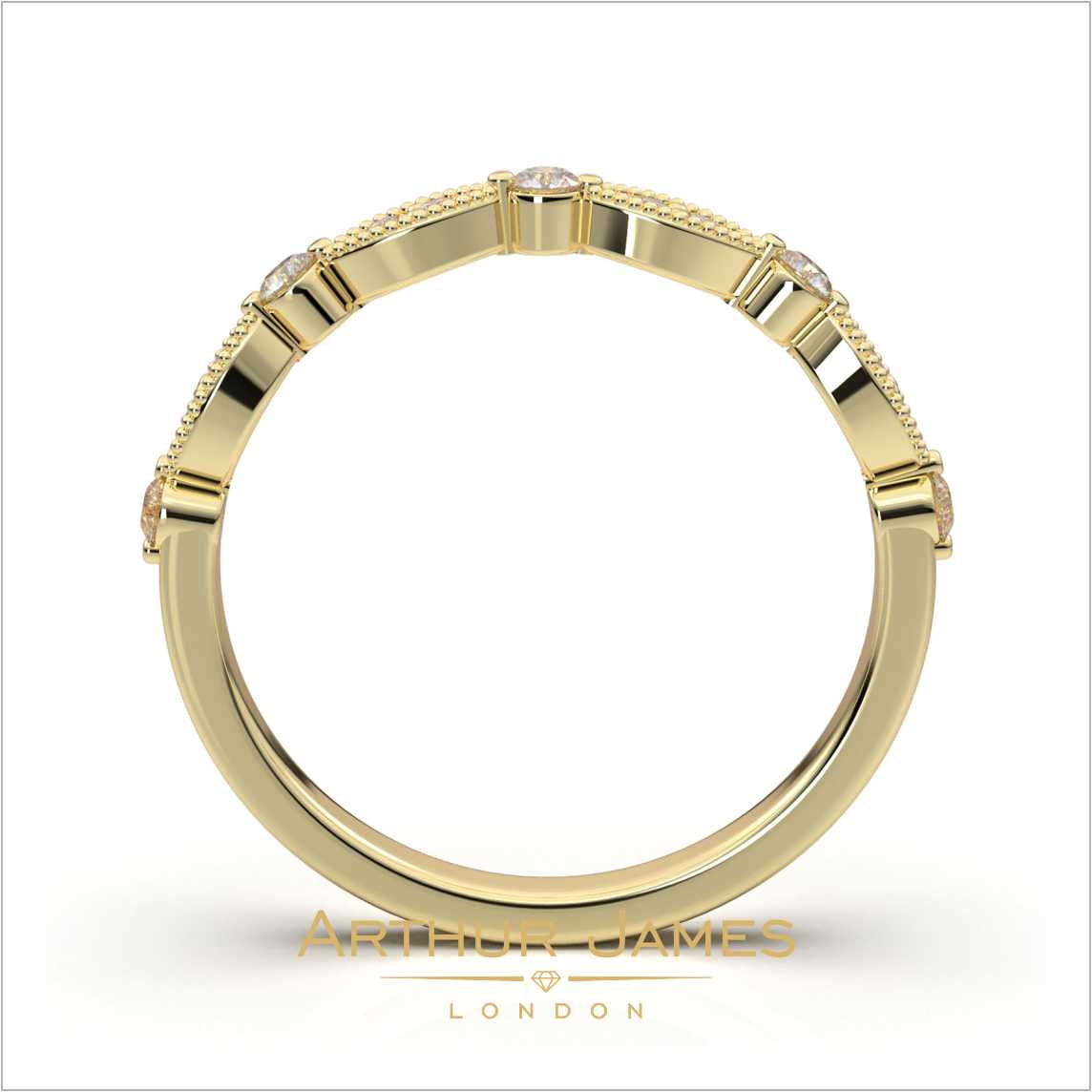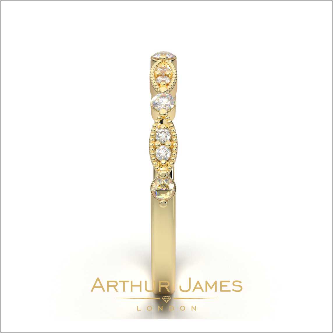• Round cut diamond women’s milgrain band ring
