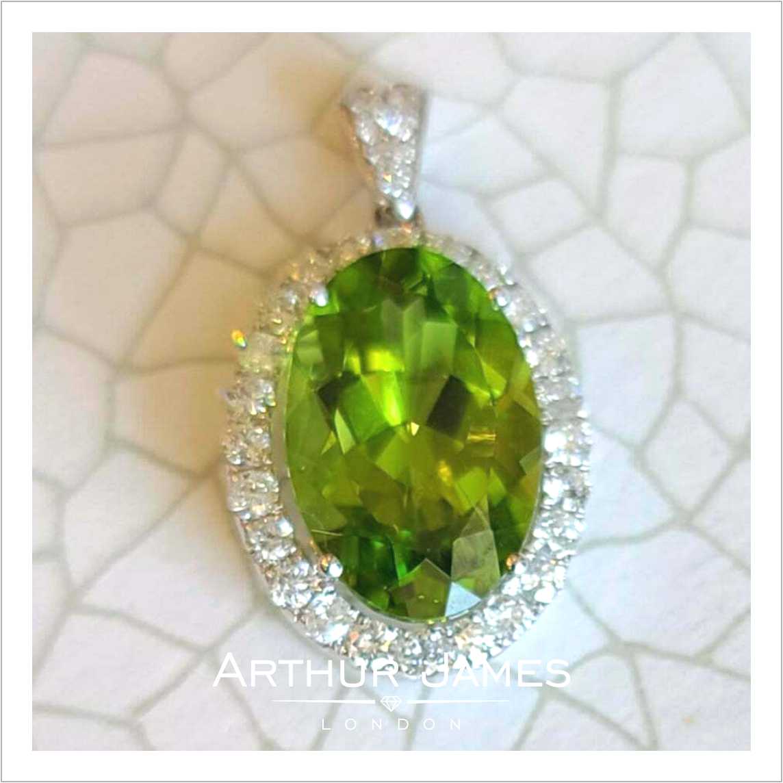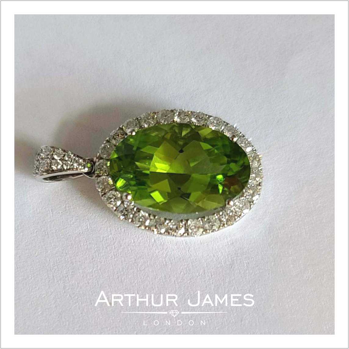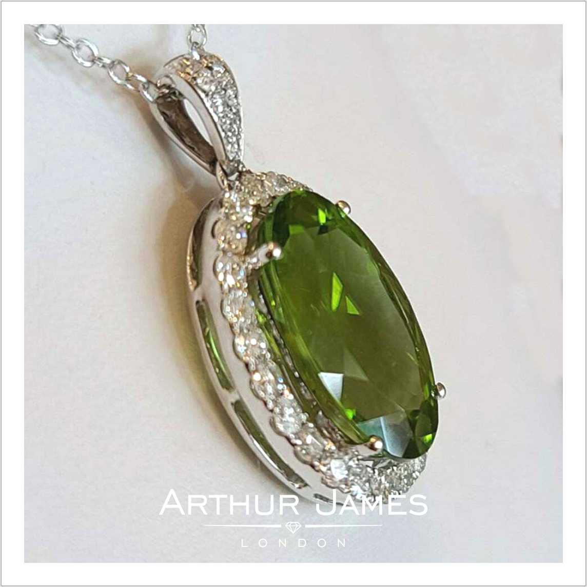 • Oval green Peridot , diamond-studded white gold plated women’s pendant