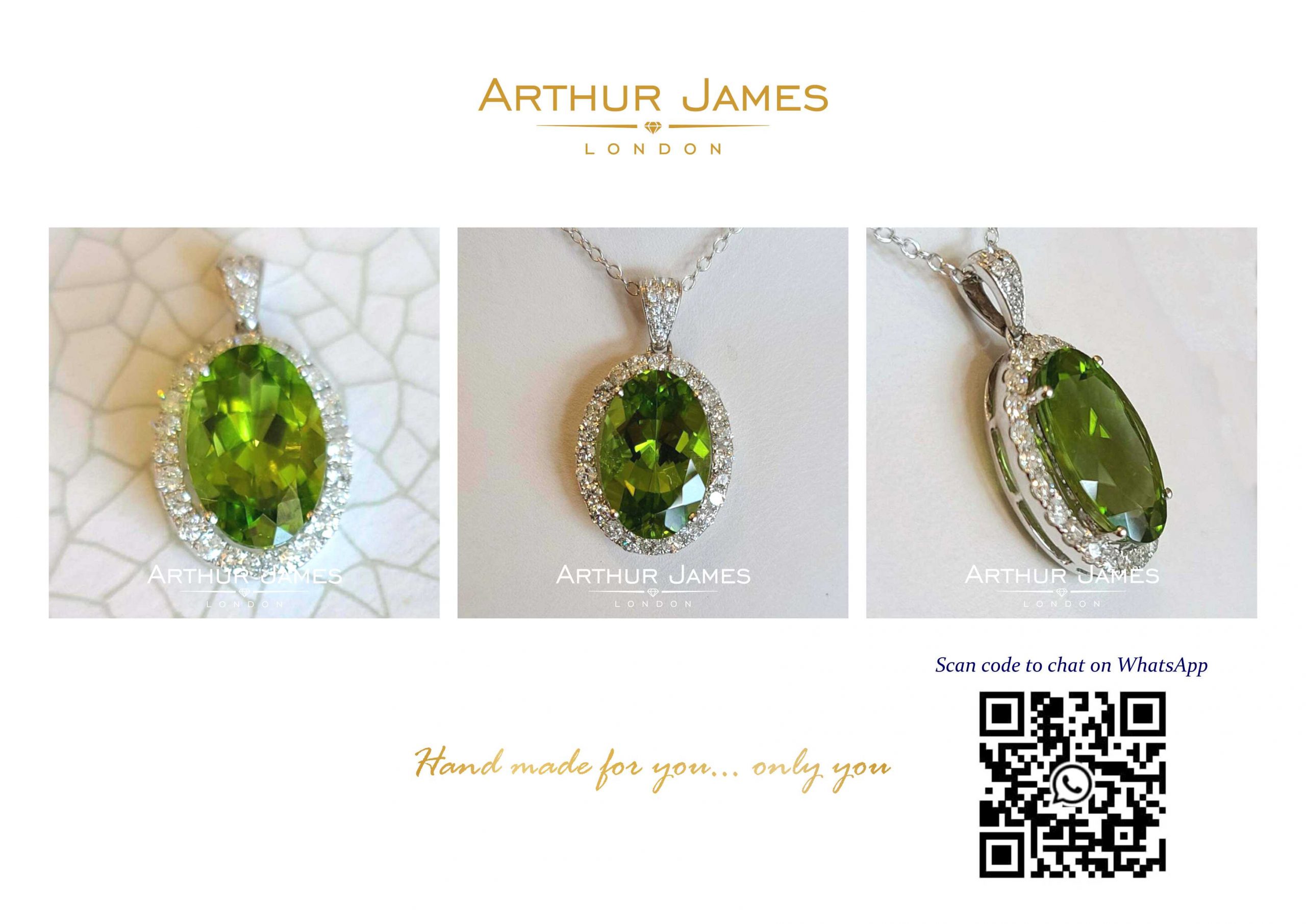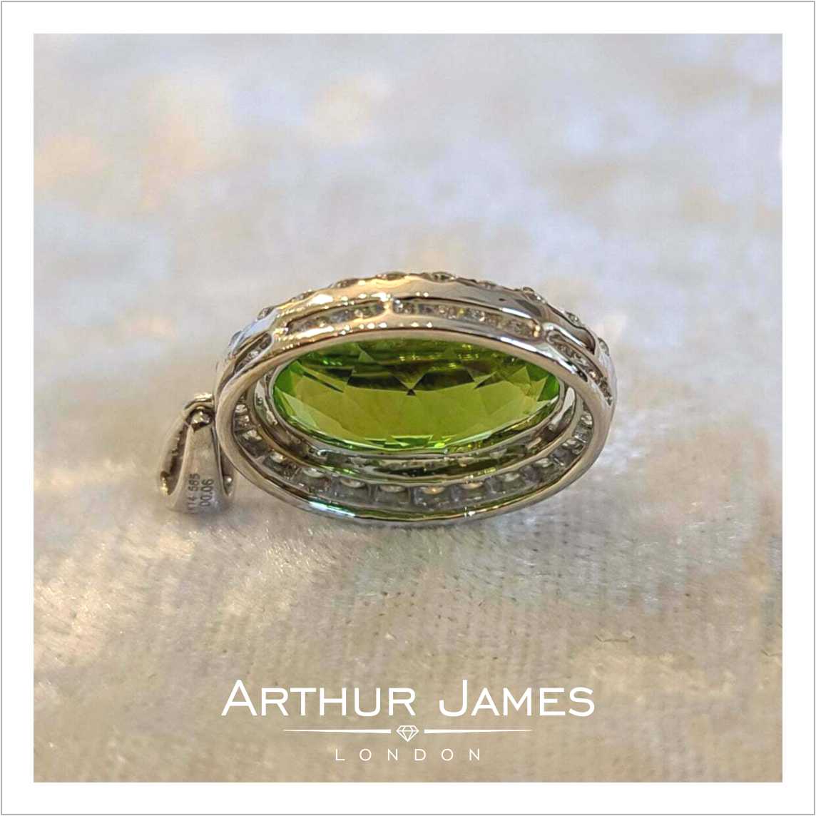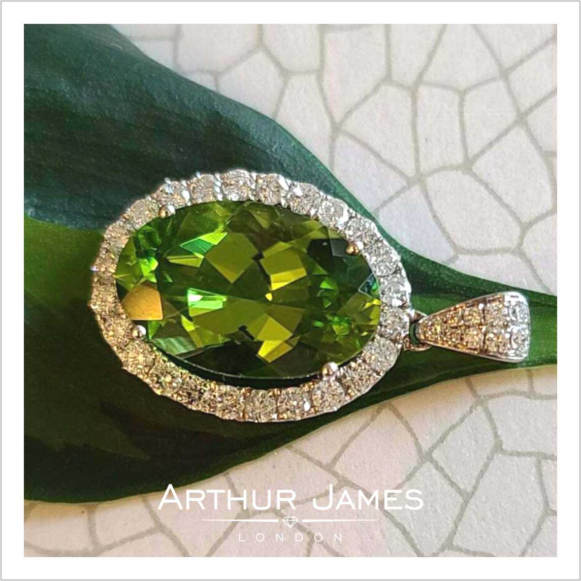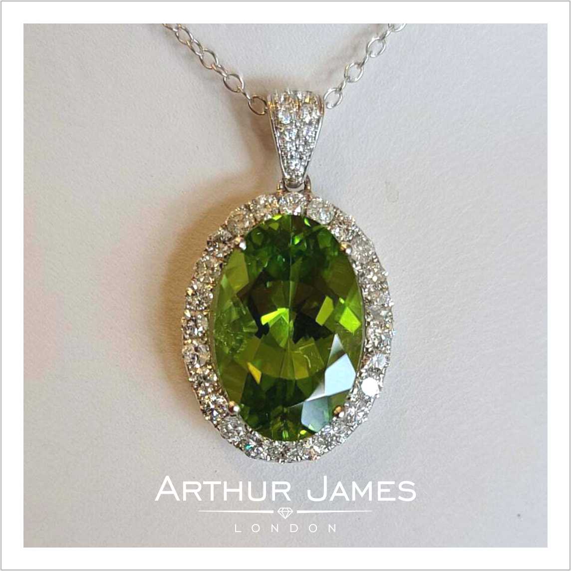 • Oval green Peridot , diamond-studded white gold plated women’s pendant