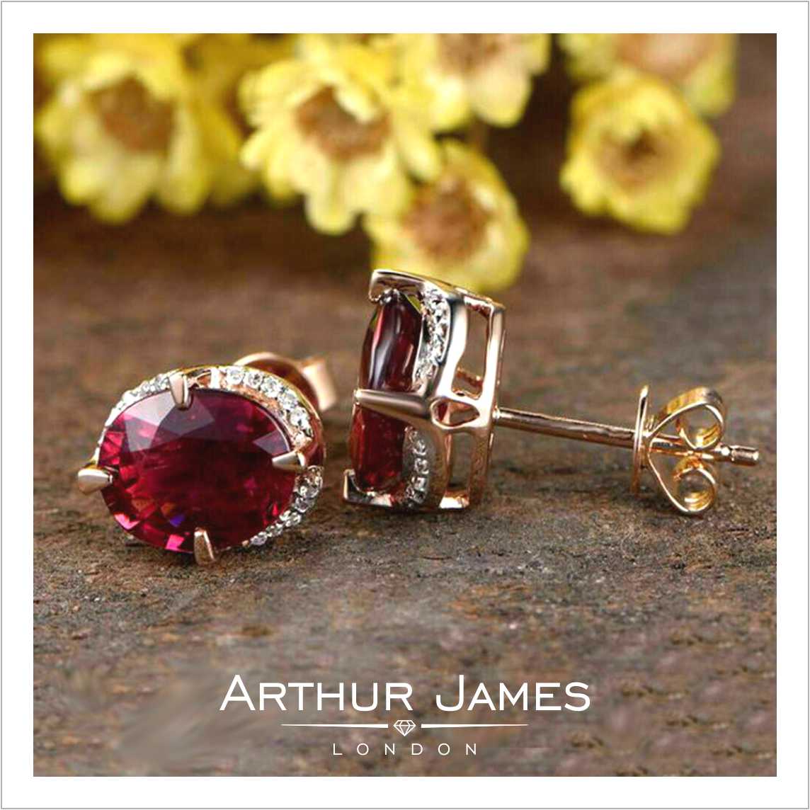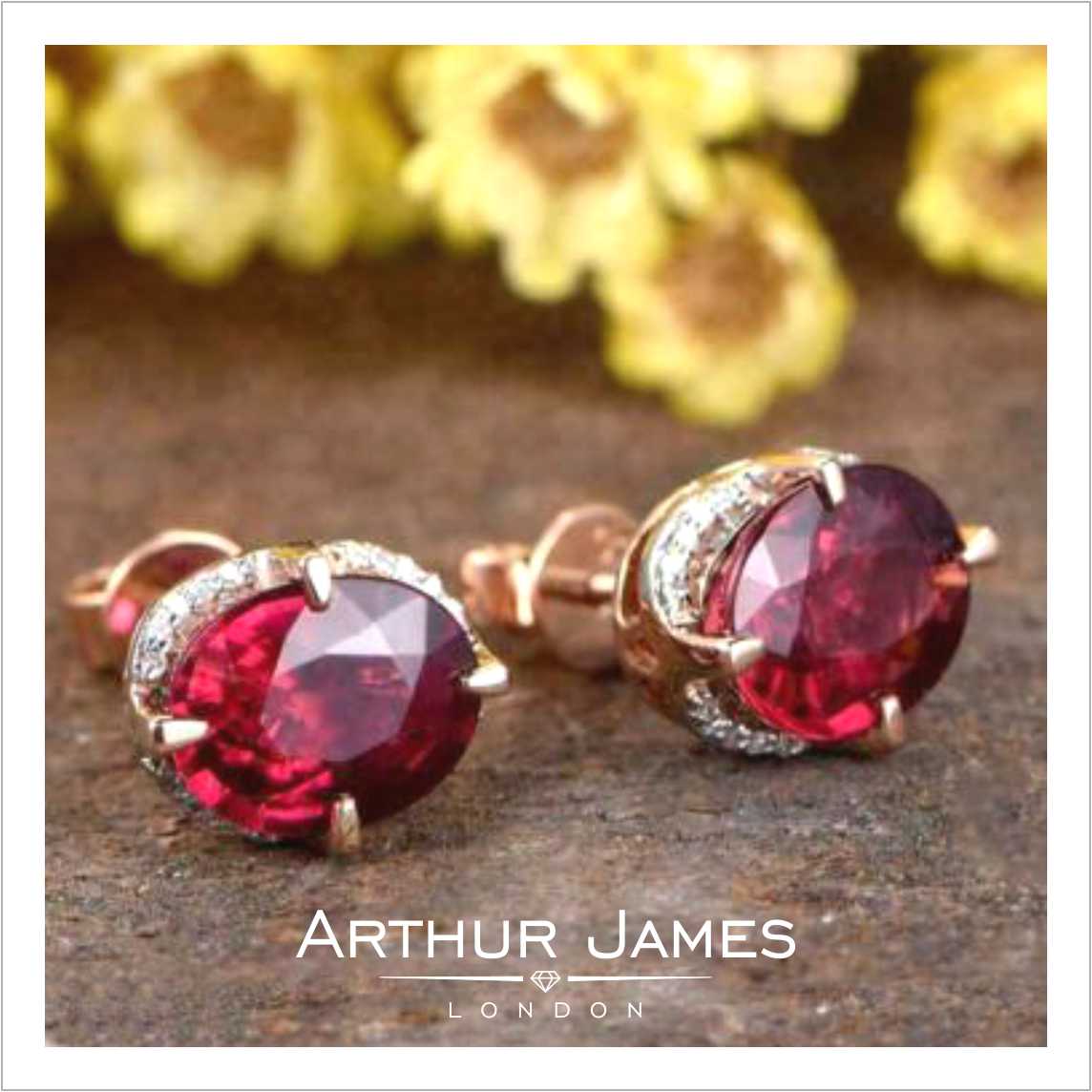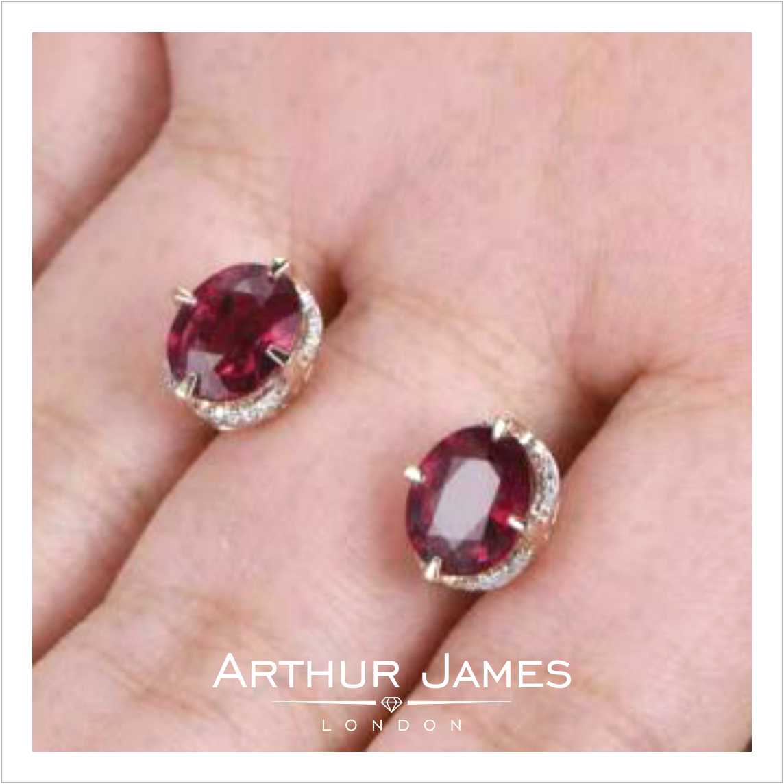 • Oval Cut Red Garnet Diamond women’s earrings