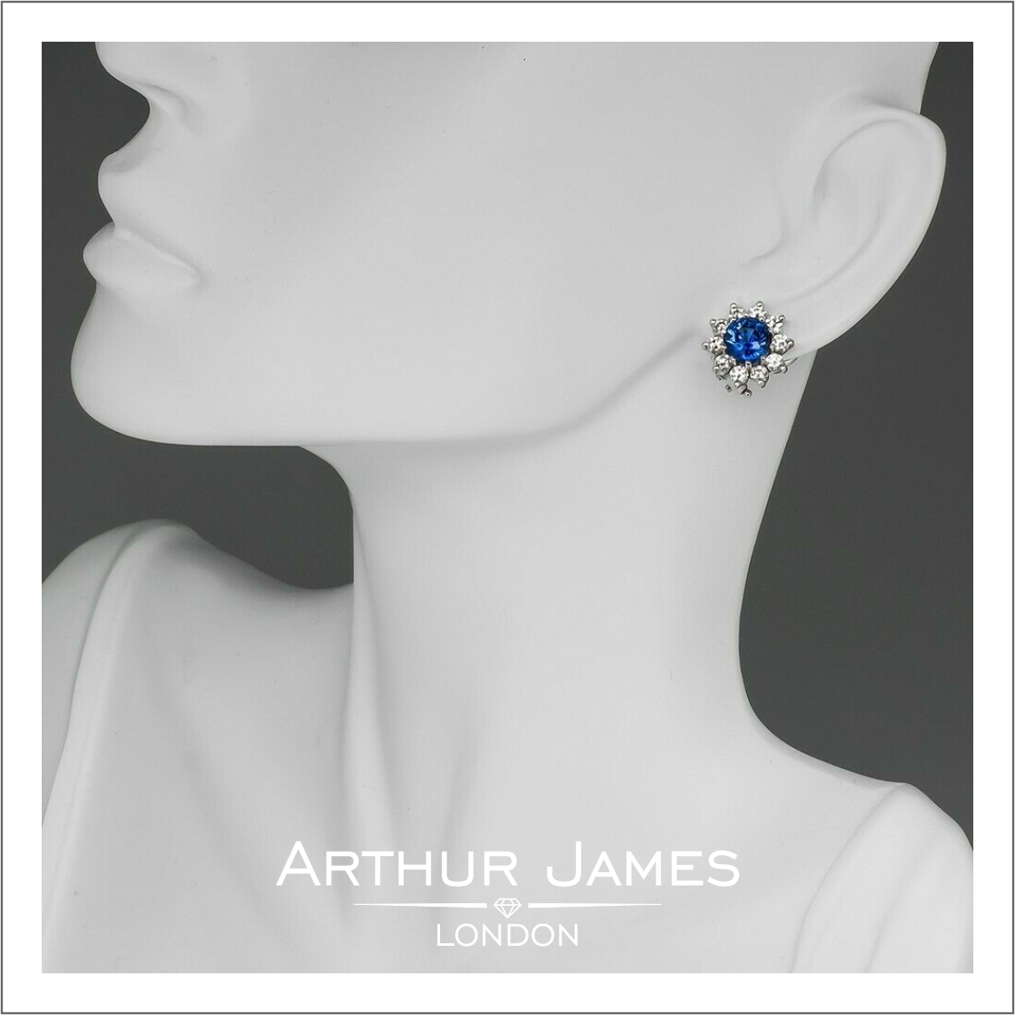 • Round-cut Blue Sapphire White Gold Plated Drops for Women