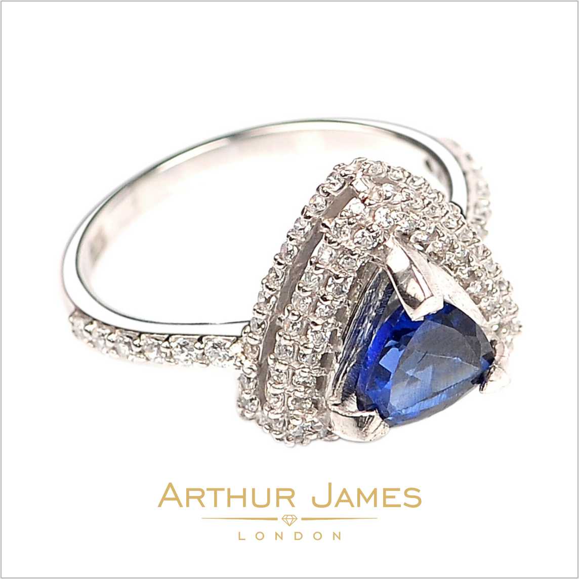 • Trillion-cut blue tanzanite sterling silver womens ring